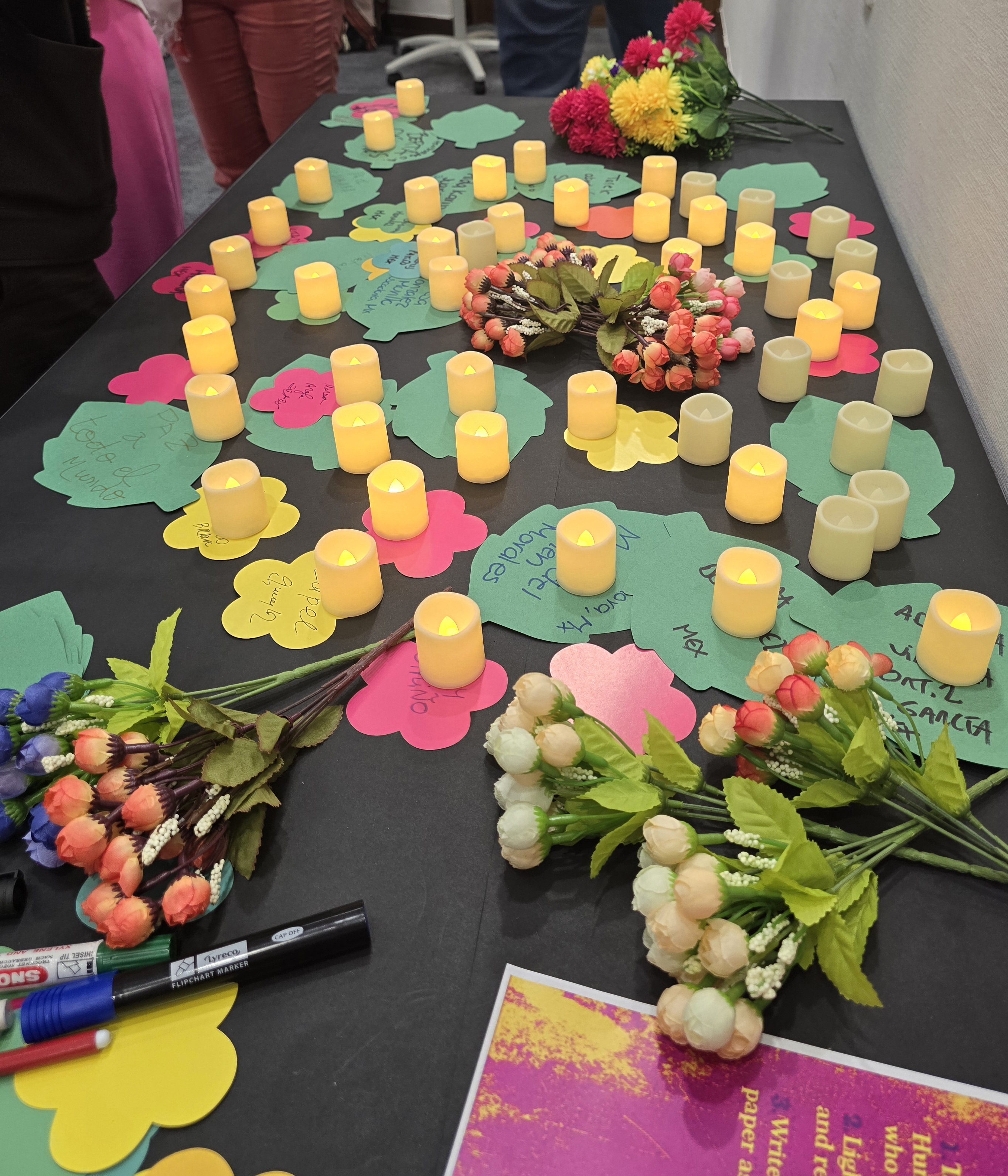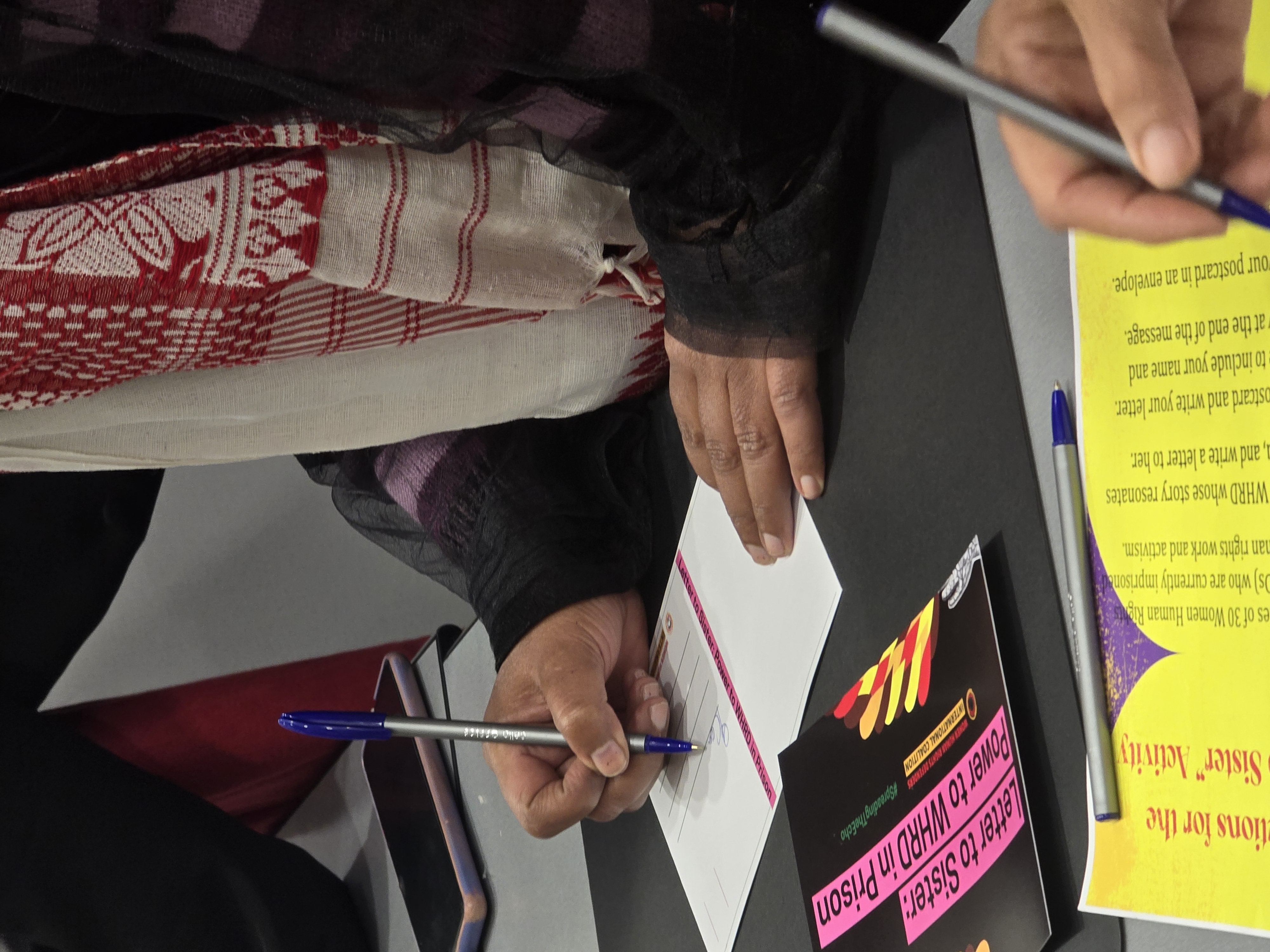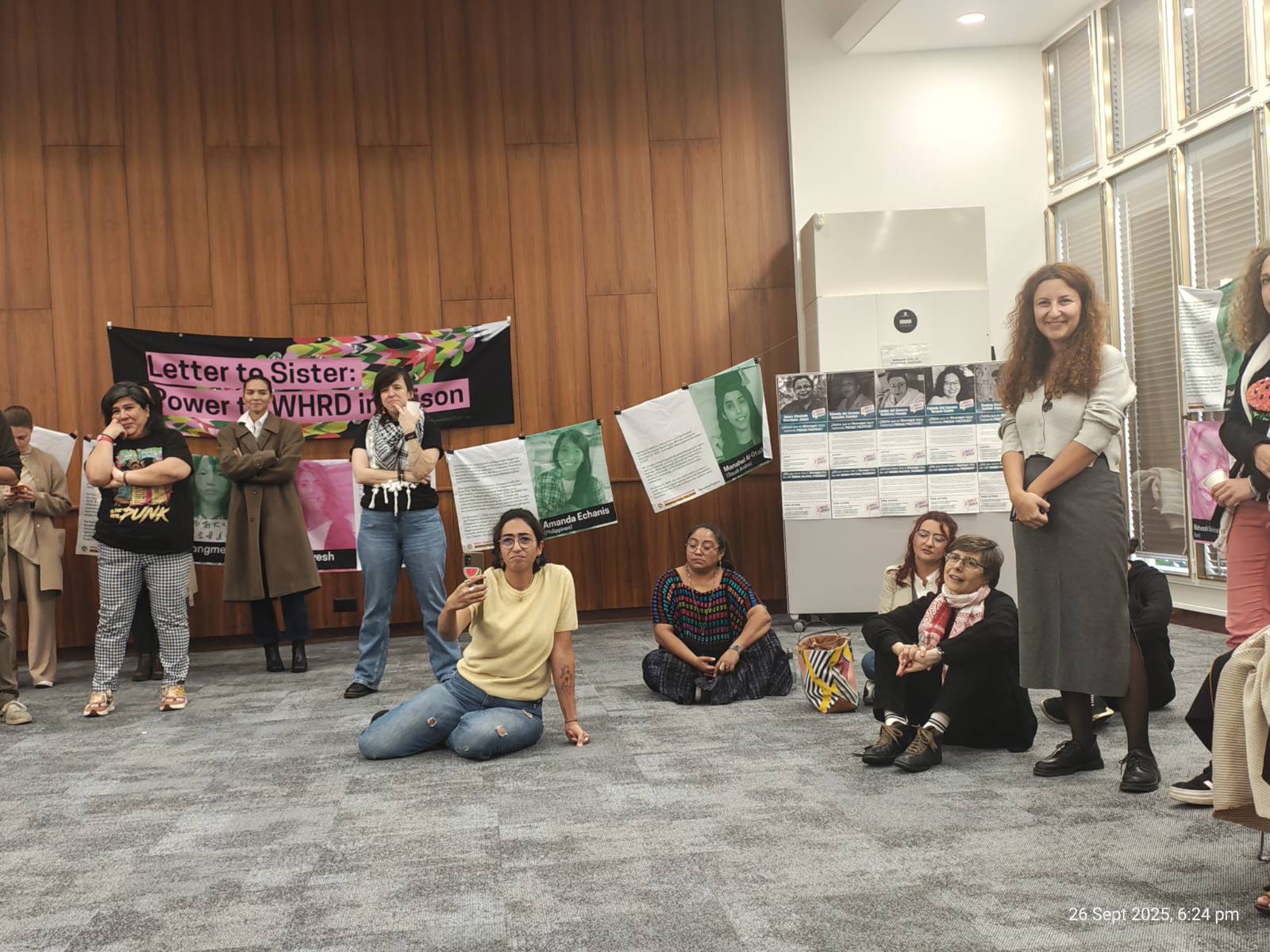 On September 26th, our three coalitions hosted a joint reception in Geneva entitled “Louder, Angrier and Stronger Together.” The gathering honored our shared herstories and amplified the voices of WHRDs across the globe. Guests engaged with stories of WHRDs unjustly imprisoned for their activism, writing letters of solidarity to them. Stories from Gaza and Sudan were featured in the room, alongside moments of remembrance where participants lit candles for defenders who are no longer with us. Together, in the context of a campaign and invitation launched by IM-Defensoras, we also imagined “Radical care in a Burning World” through collective drawings.